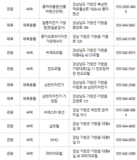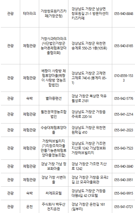거창 인근의 숙박업소 및 관광지에서도 카드를 사용할 수 있어 여행을 즐기기에도 유용합니다.