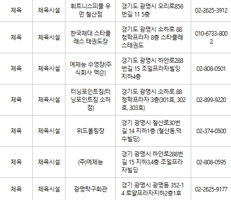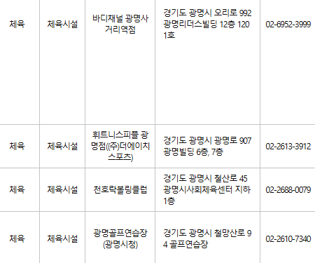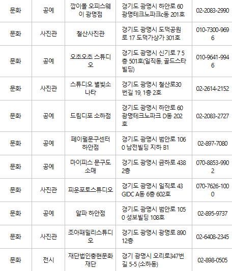 광명 문화누리카드 사용처