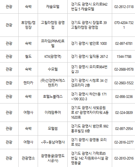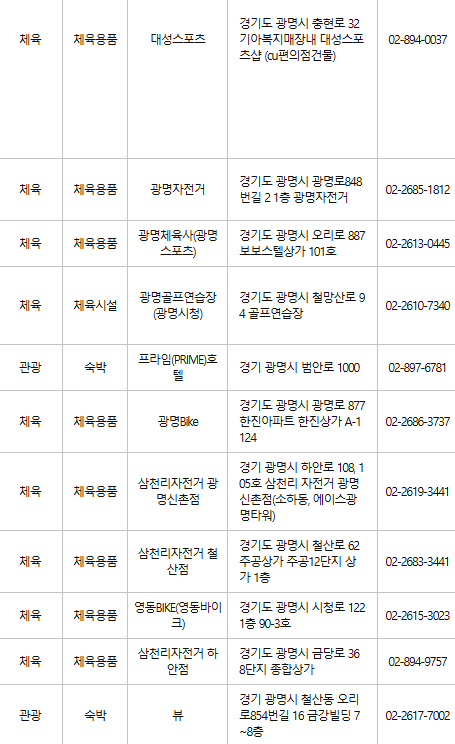 광명 인근의 숙박업소 및 관광지에서도 카드를 사용할 수 있어 여행을 즐기기에도 유용합니다.