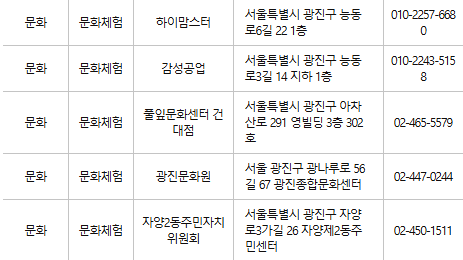 광진구 문화누리카드 사용처