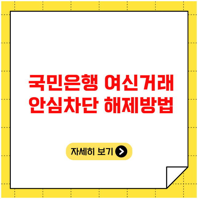 국민은행 여신거래 안심차단이 걸려서 급하게 대출이나 카드 이용이 필요한데 막혀있나요? 생각보다 간단한 해제 방법을 모르는 분들이 많아서 불필요한 시간을 낭비하고 있습니다. 지금 바로 5분 투자로 차단 해제 방법을 완벽히 마스터하세요.