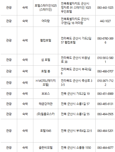 군산 인근의 숙박업소 및 관광지에서도 카드를 사용할 수 있어 여행을 즐기기에도 유용합니다.