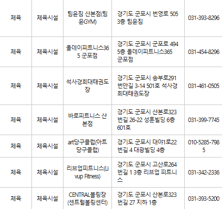 군포 문화누리카드 사용처