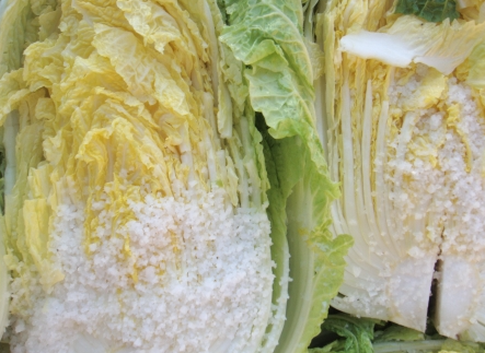 김장김치의 첫 단계는 배추를 절이는 것입니다. 배추를 반으로 갈라 소금물(물 10L당 소금 1kg 비율)에 8-12시간 절여줍니다. 배추가 충분히 절여지면 맑은 물에 3번 정도 헹궈 소금기를 빼고, 체에 건져 2-3시간 동안 물기를 빼줍니다. 이 과정은 김치의 맛에 중요한 영향을 미칩니다.