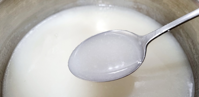 찹쌀가루 400g을 물 2.4L에 풀어 중불에서 끓여줍니다. 끓이는 동안 계속 저어주어 덩어리가 생기지 않도록 합니다. 찹쌀풀이 되직해지고 투명해지면(약 10-15분 소요) 불을 끄고 식혀줍니다. 찹쌀풀은 김치 양념의 점도를 높이고 발효를 돕는 역할을 합니다.