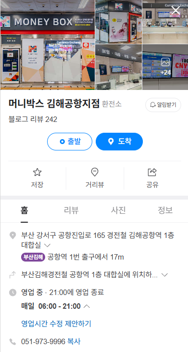 김해공항 관련 모바일 앱이나 공항 내 설치된 정보 안내판을 통해 환전소 정보를 확인할 수 있습니다.