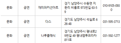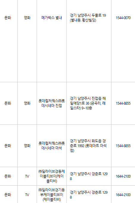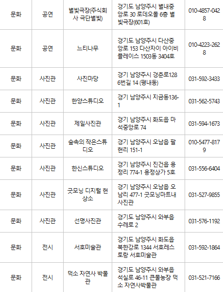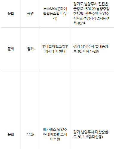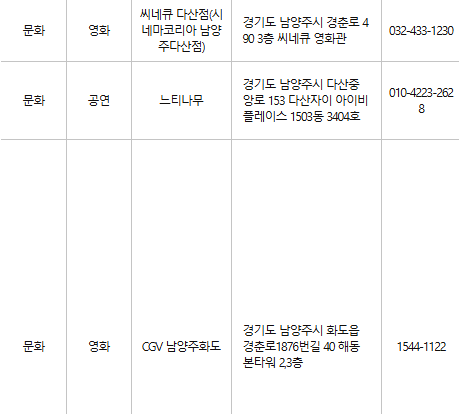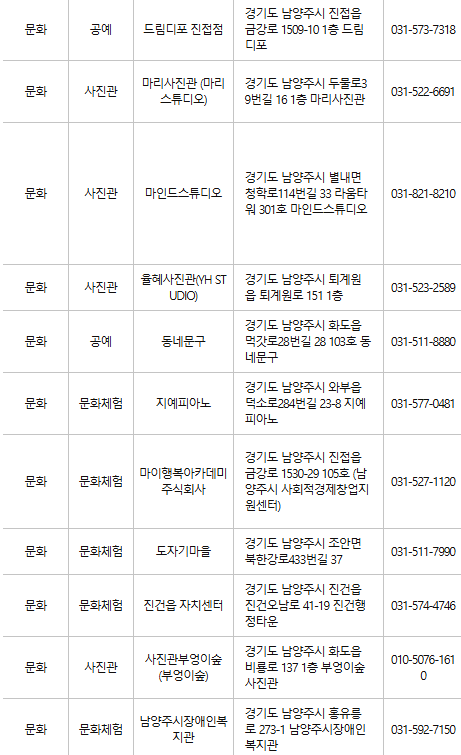 남양주 문화누리카드 사용처