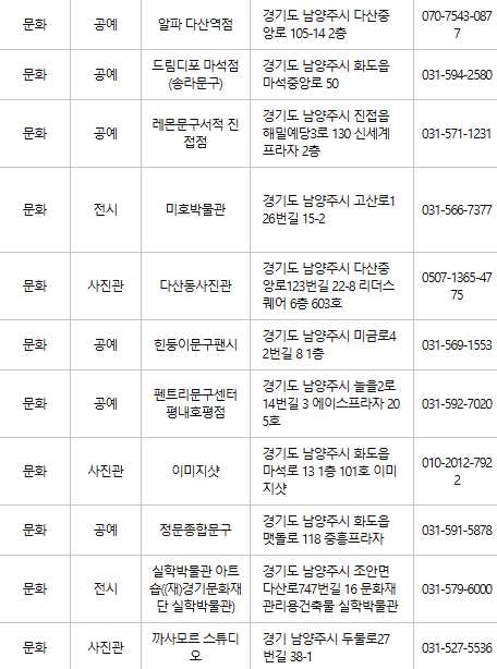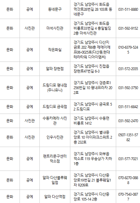 #남양주문화누리카드사용처 #남양주문화누리카드가맹점 #남양주문화누리가맹점연락처 #문화누리카드사용처 #문화누리카드온라인사용처 #문화누리카드잔액조회 #문화누리카드사용처확인 #문화누리카드남양주사용방법 #남양주문화누리카드사용할수있는곳