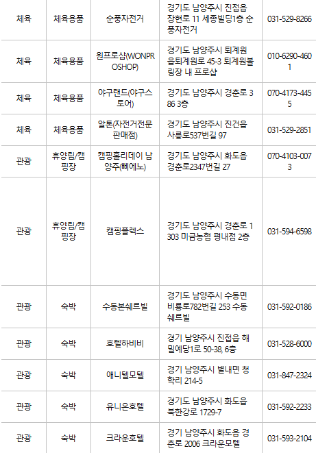 남양주 인근의 숙박업소 및 관광지에서도 카드를 사용할 수 있어 여행을 즐기기에도 유용합니다.