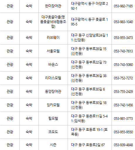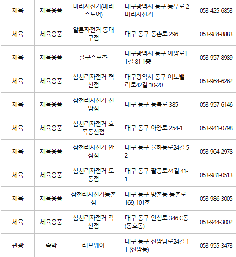 대구 동구 인근의 숙박업소 및 관광지에서도 카드를 사용할 수 있어 여행을 즐기기에도 유용합니다.