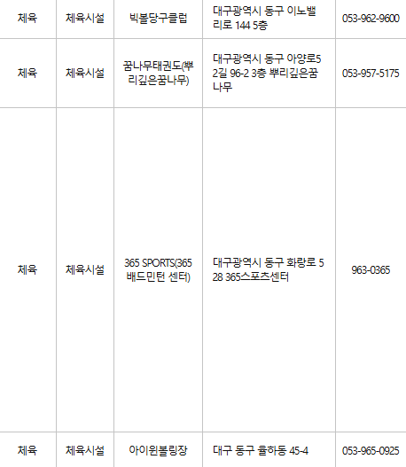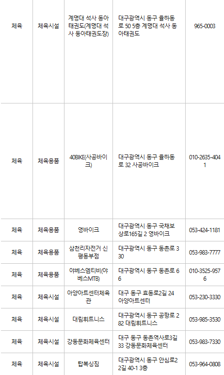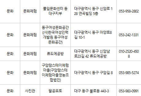 대구 동구 문화누리카드 사용처