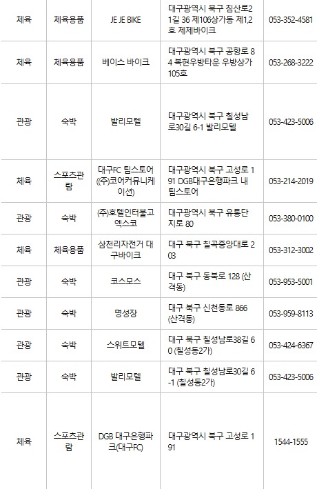 대구 북구 인근의 숙박업소 및 관광지에서도 카드를 사용할 수 있어 여행을 즐기기에도 유용합니다.