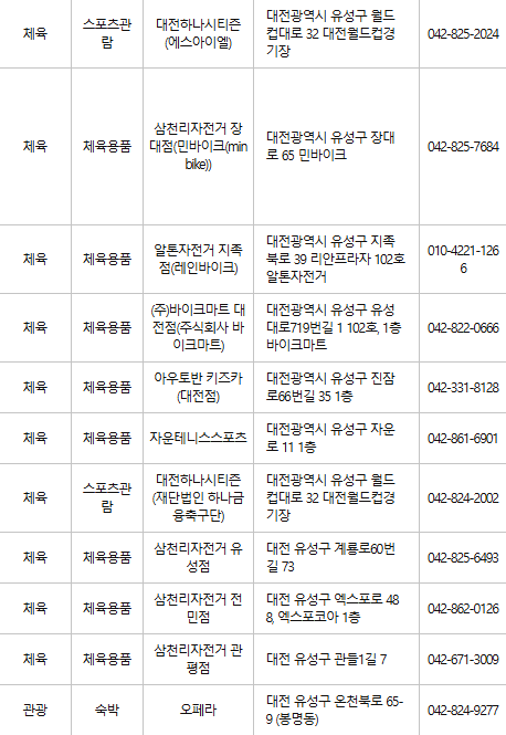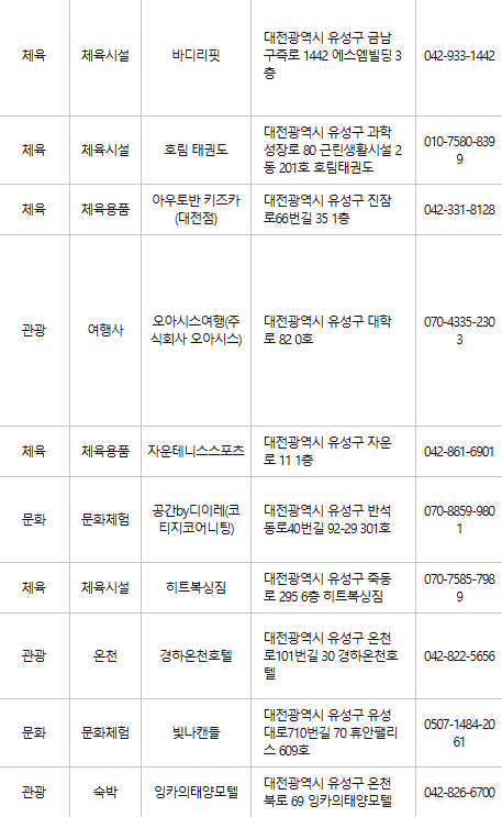 대전 유성구 인근의 숙박업소 및 관광지에서도 카드를 사용할 수 있어 여행을 즐기기에도 유용합니다.