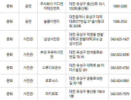 대전 유성구 문화누리카드 사용처