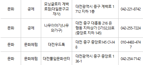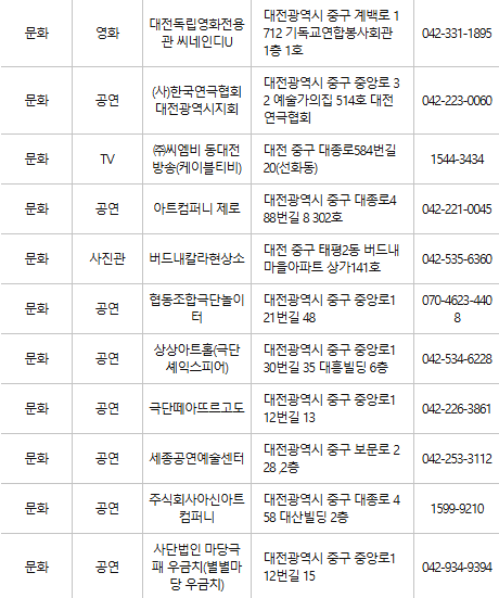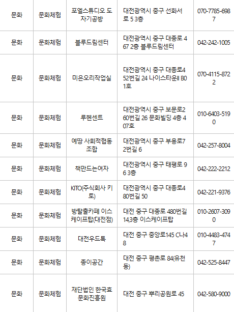 대전 중구 문화누리카드 사용처