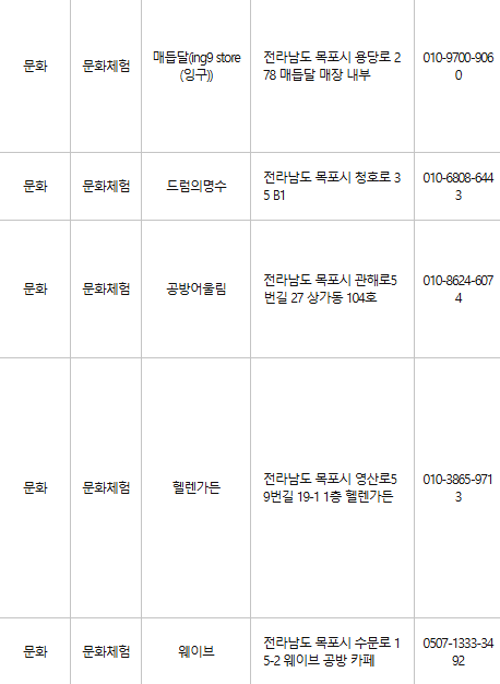 #목포문화누리카드사용처 #목포문화누리카드가맹점 #목포문화누리가맹점연락처 #문화누리카드사용처 #문화누리카드온라인사용처 #문화누리카드잔액조회 #문화누리카드사용처확인 #문화누리카드목포사용방법 #목포문화누리카드사용할수있는곳 #목포문화누리사용처 #목포문화누리개맹점 #목포지역문화누리카드가맹점 #전남문화누리사용처