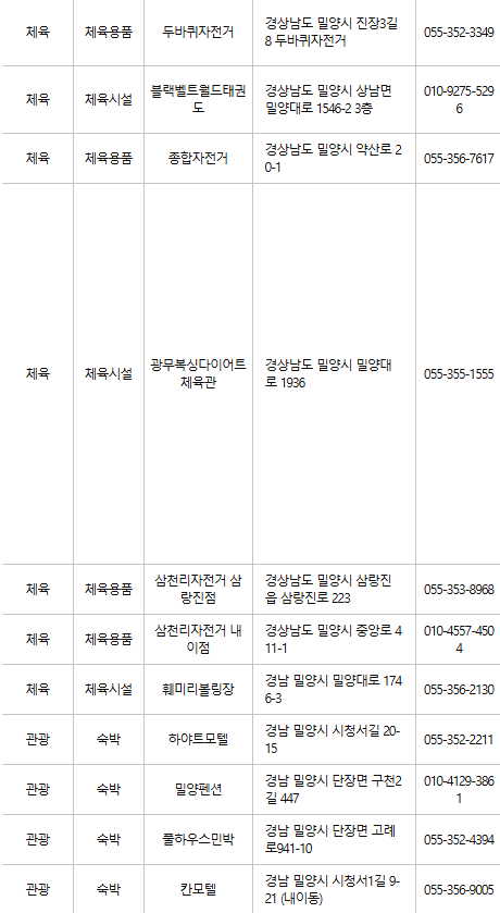 밀양 인근의 숙박업소 및 관광지에서도 카드를 사용할 수 있어 여행을 즐기기에도 유용합니다.