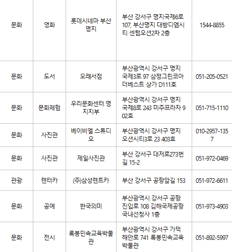 부산 강서구 문화누리카드 사용처