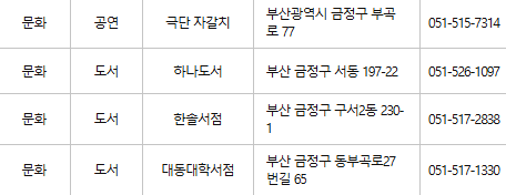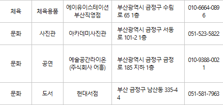 부산 금정구 문화누리카드 사용처