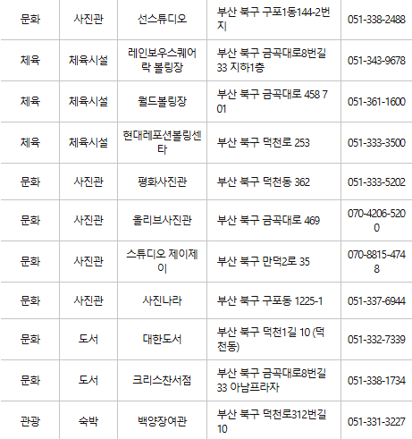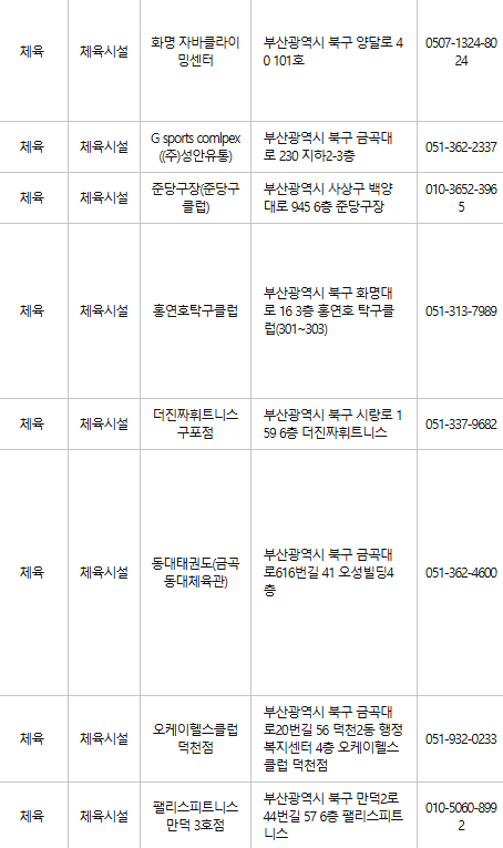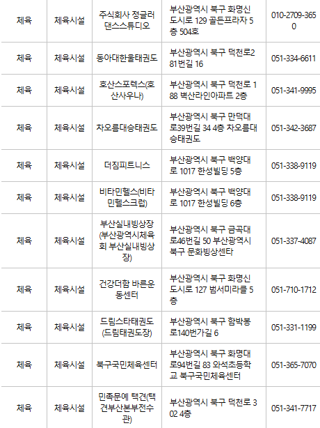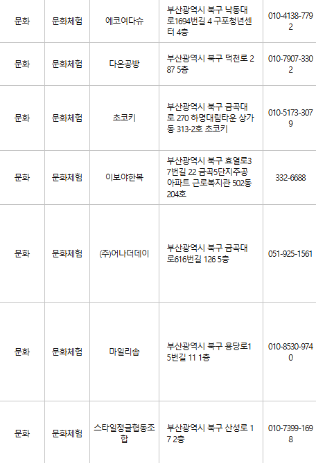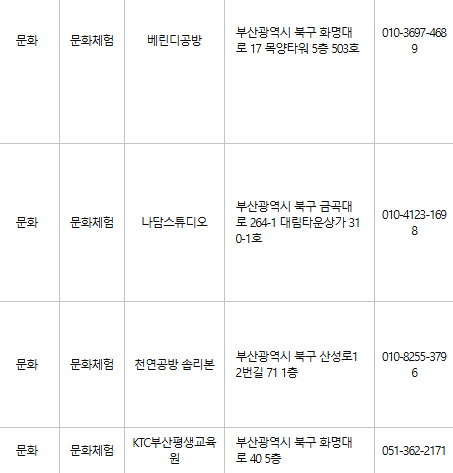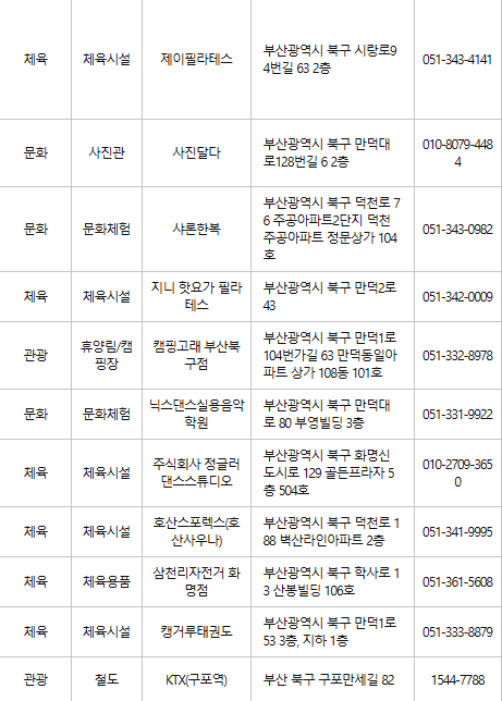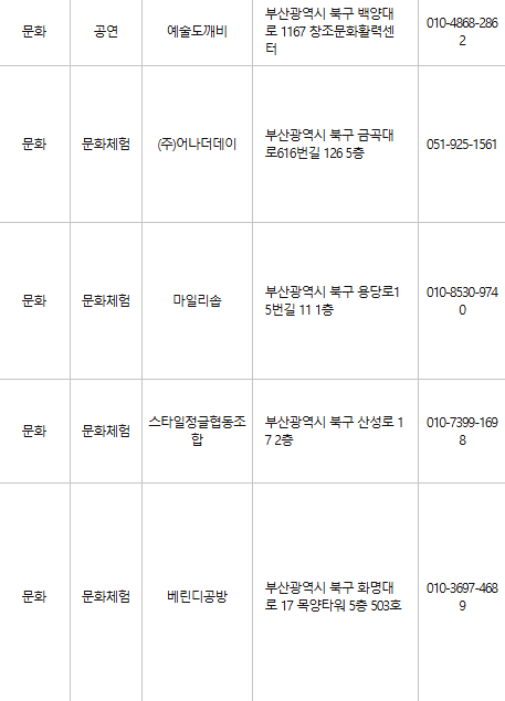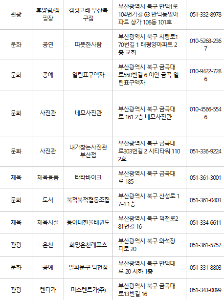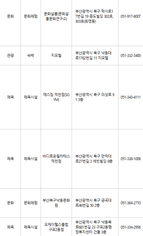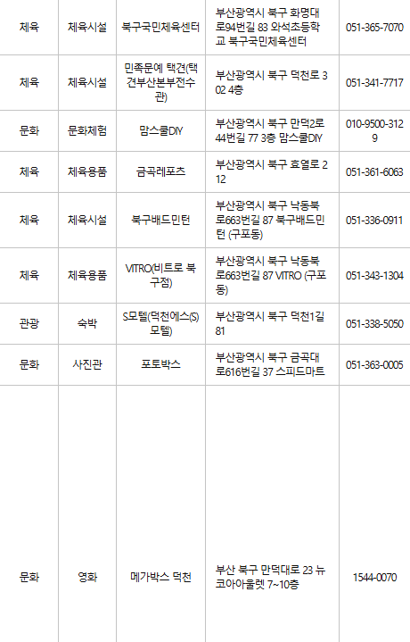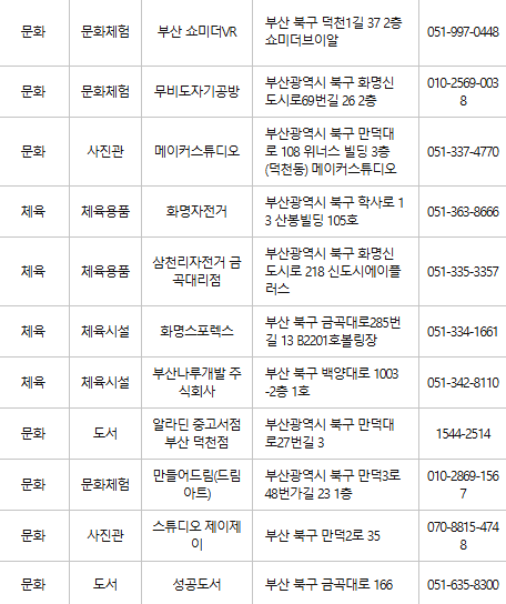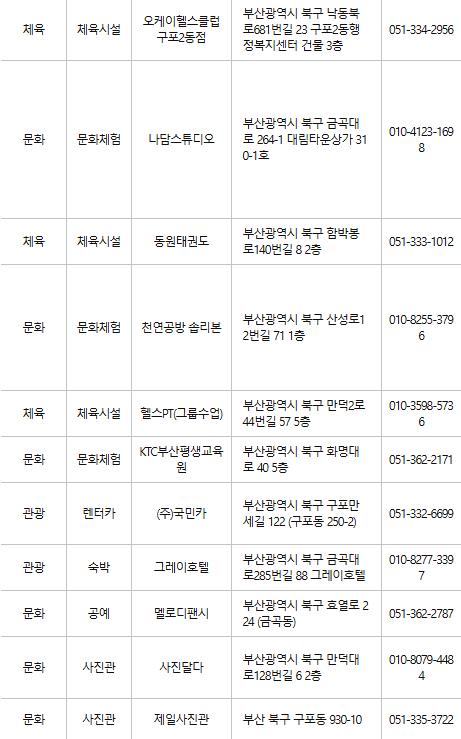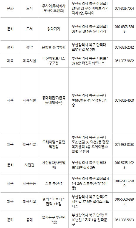 부산 북구 문화누리카드 사용처