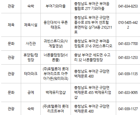 부여 인근의 숙박업소 및 관광지에서도 카드를 사용할 수 있어 여행을 즐기기에도 유용합니다.