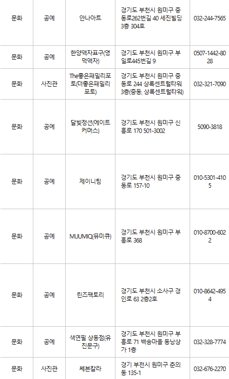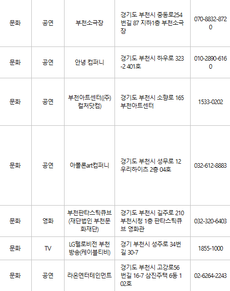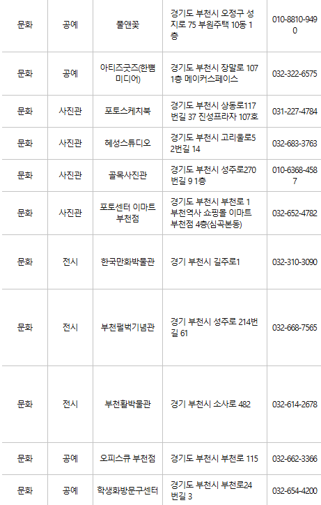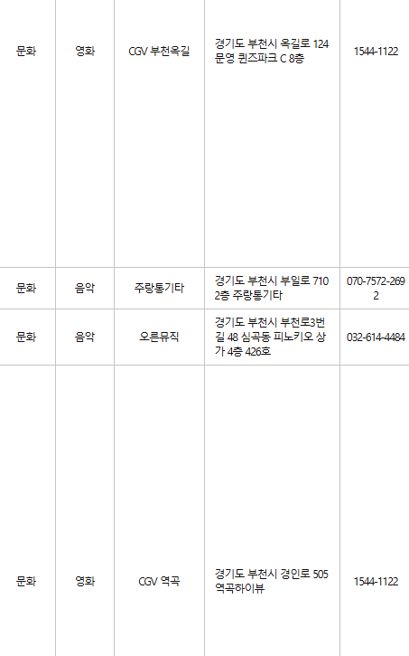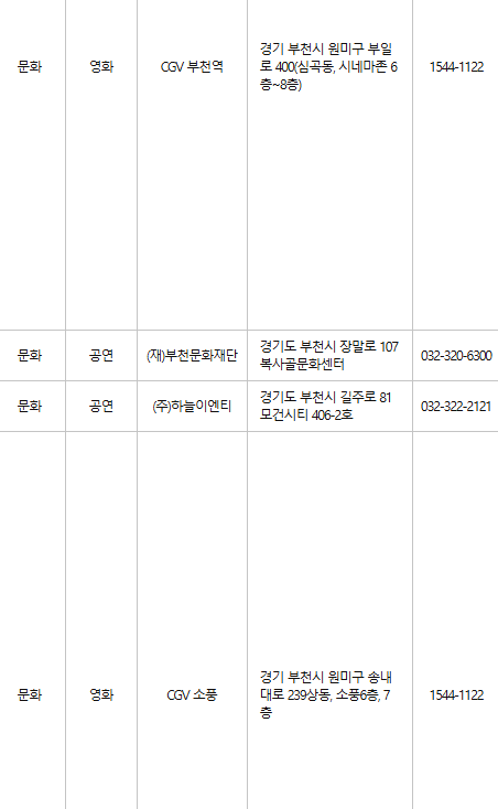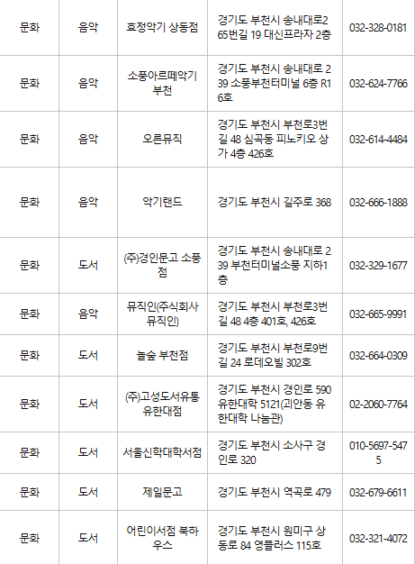부천 문화누리카드 사용처
