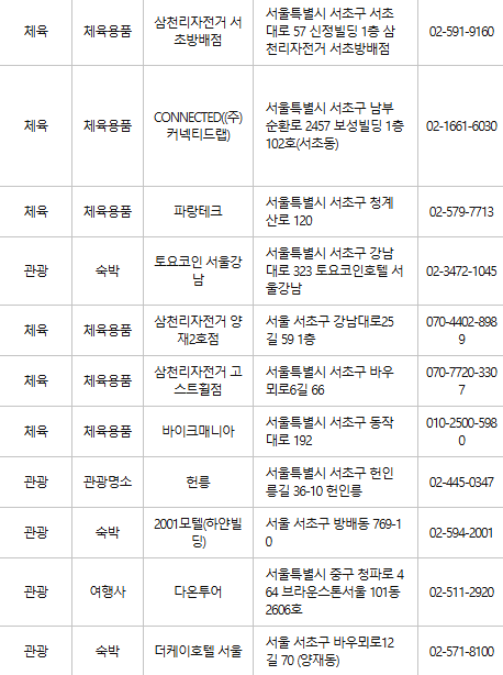 서초구 인근의 숙박업소 및 관광지에서도 카드를 사용할 수 있어 여행을 즐기기에도 유용합니다.