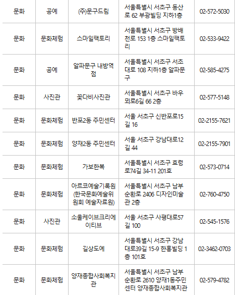 #서초구문화누리카드사용처 #서초구문화누리카드가맹점 #서초구문화누리가맹점연락처 #문화누리카드사용처 #문화누리카드온라인사용처 #문화누리카드잔액조회 #문화누리카드사용처확인 #문화누리카드서초구사용방법 #서초구문화누리카드사용할수있는곳 #서초구문화누리사용처 #서초구문화누리개맹점 #서초구지역문화누리카드가맹점
