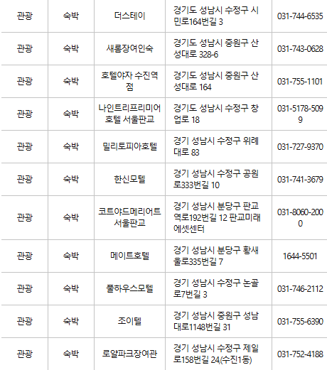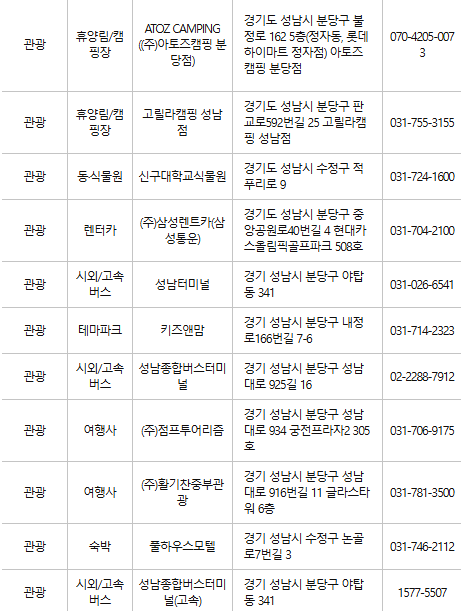 성남 인근의 숙박업소 및 관광지에서도 카드를 사용할 수 있어 여행을 즐기기에도 유용합니다.