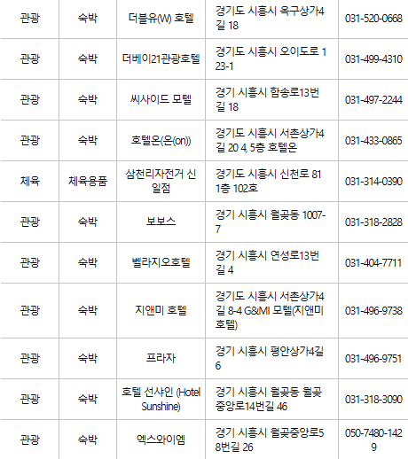 시흥 인근의 숙박업소 및 관광지에서도 카드를 사용할 수 있어 여행을 즐기기에도 유용합니다.