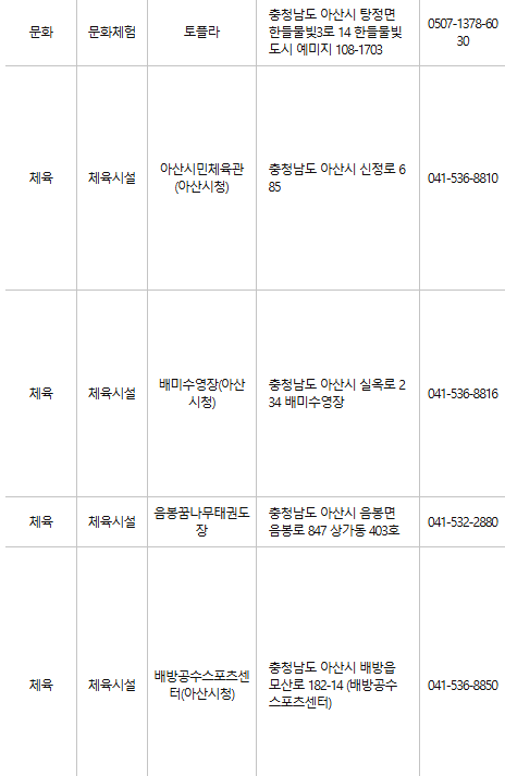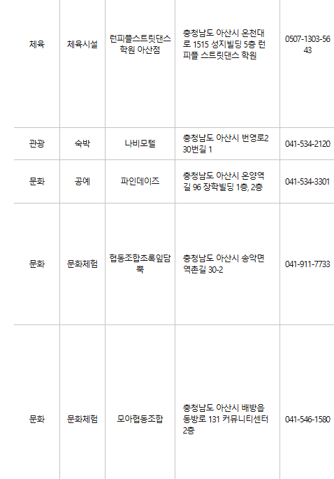 아산 문화누리카드 사용처