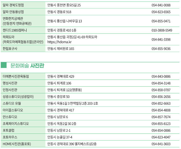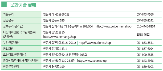 안동 문화누리카드 사용처