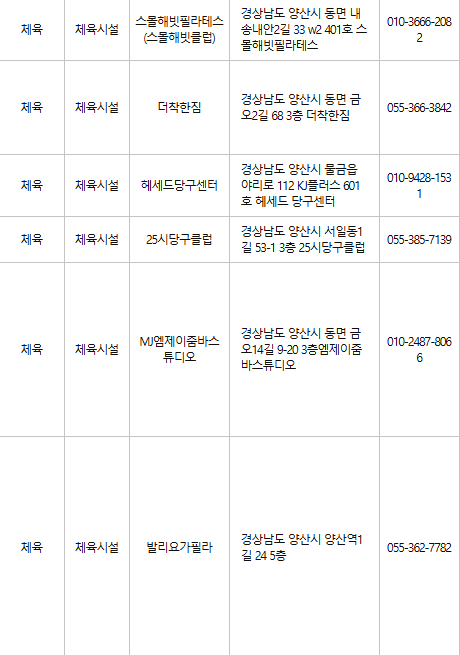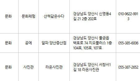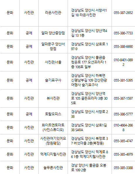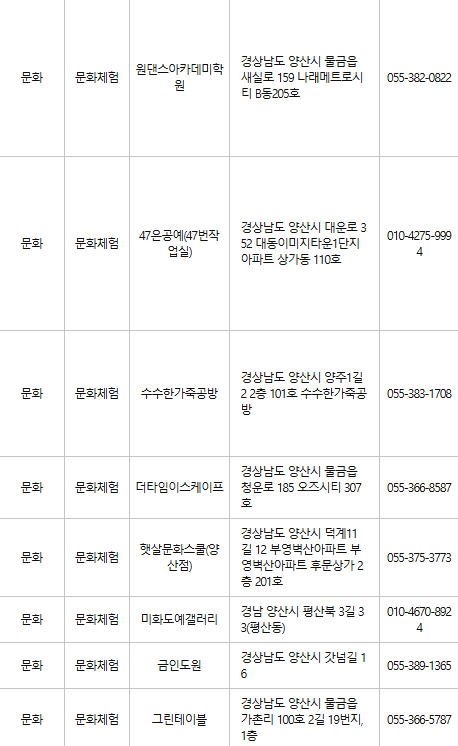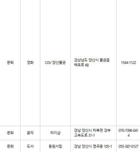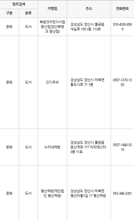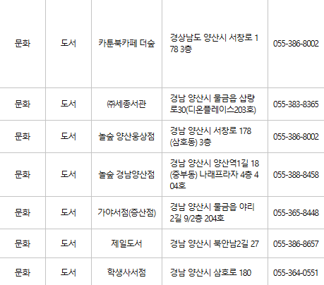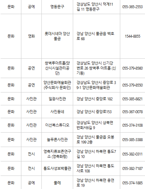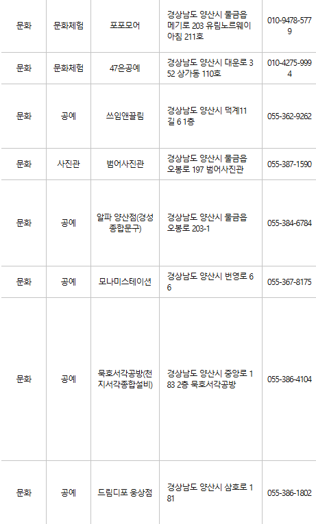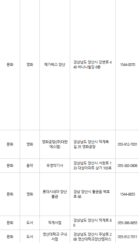 양산 문화누리카드 사용처