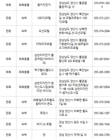 양산 인근의 숙박업소 및 관광지에서도 카드를 사용할 수 있어 여행을 즐기기에도 유용합니다.