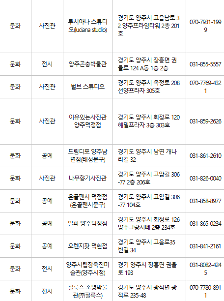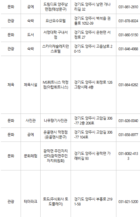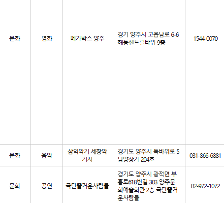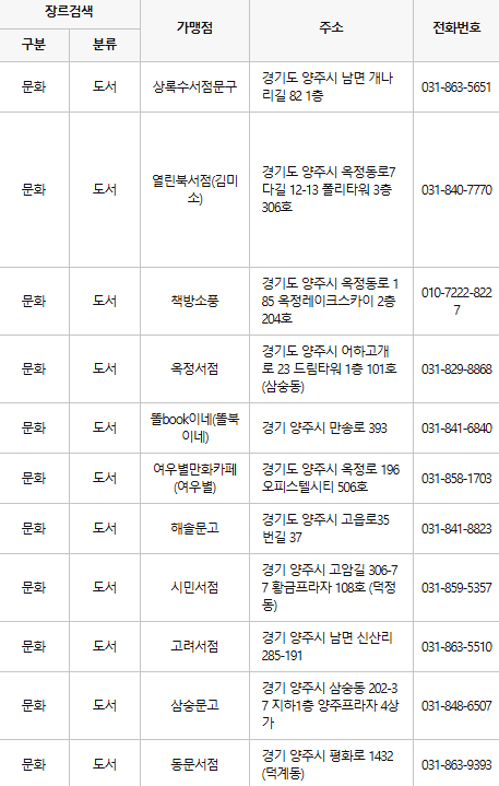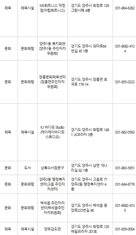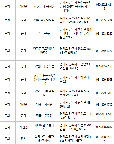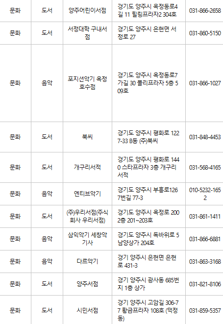 양주 문화누리카드 사용처