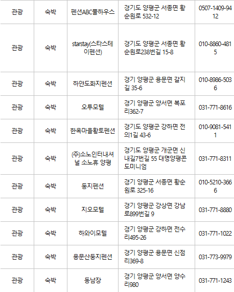 양평 인근의 숙박업소 및 관광지에서도 카드를 사용할 수 있어 여행을 즐기기에도 유용합니다.