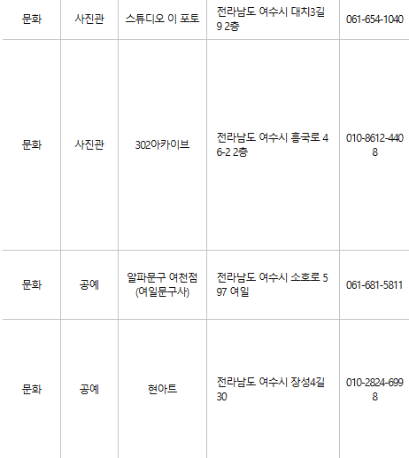 #여수문화누리카드사용처 #여수문화누리카드가맹점 #여수문화누리가맹점연락처 #문화누리카드사용처 #문화누리카드온라인사용처 #문화누리카드잔액조회 #문화누리카드사용처확인 #문화누리카드여수사용방법 #여수문화누리카드사용할수있는곳 #여수문화누리사용처 #여수문화누리개맹점 #여수지역문화누리카드가맹점 #전남문화누리사용처