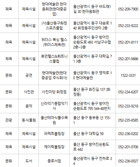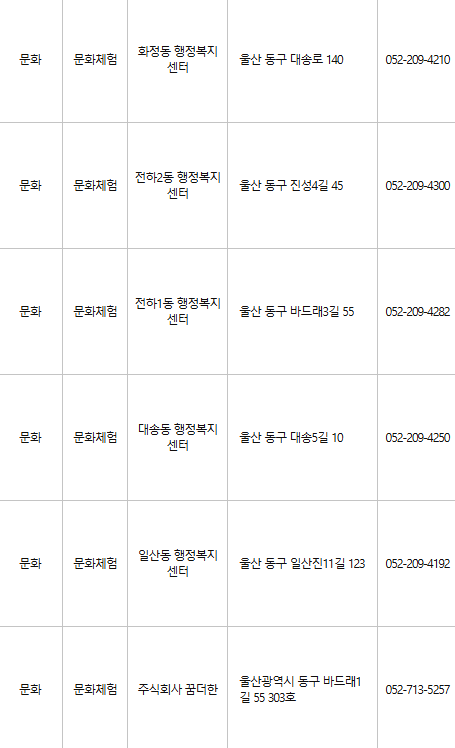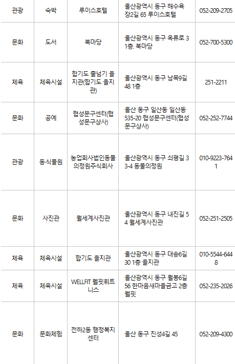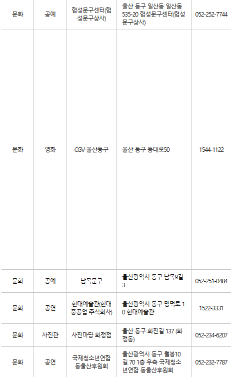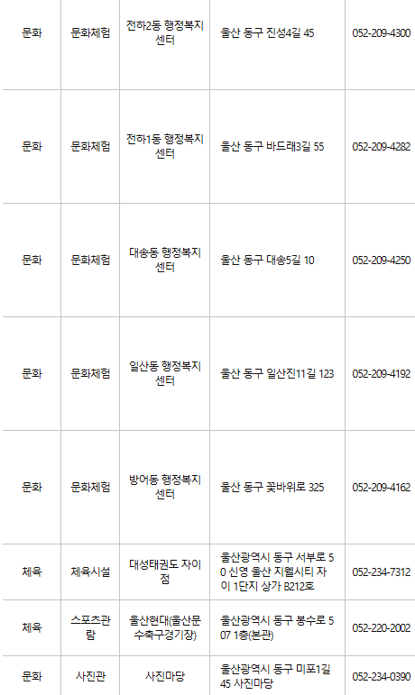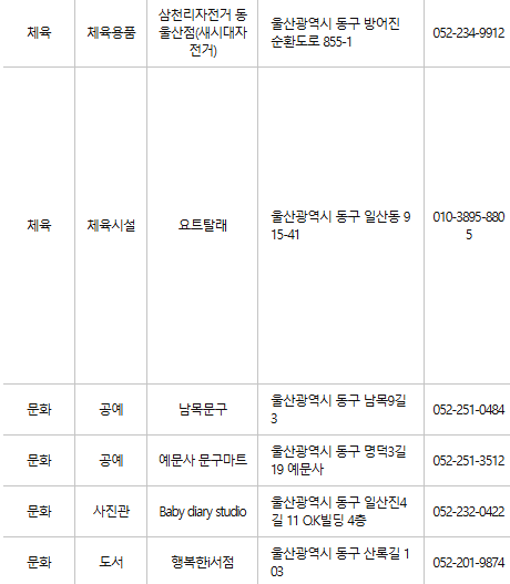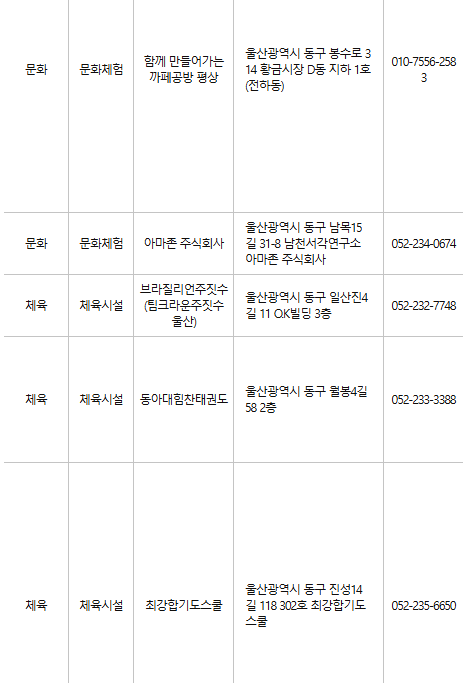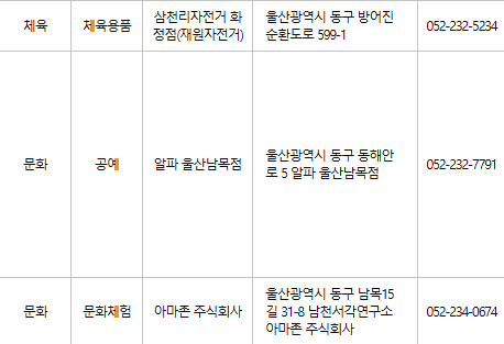 울산 동구 문화누리카드 사용처