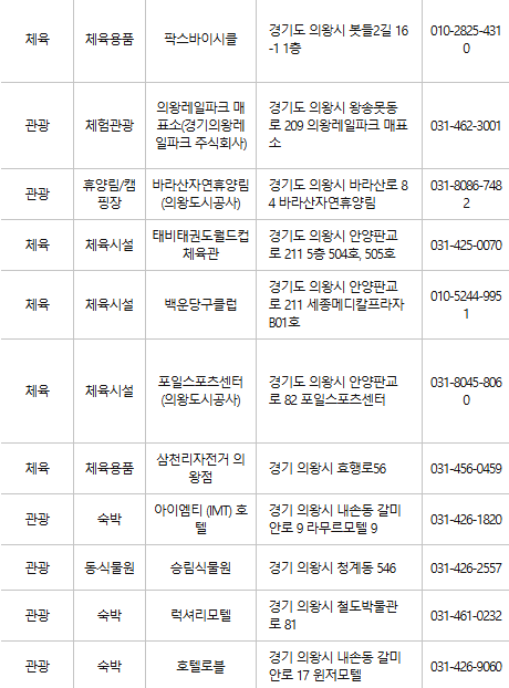 의왕 인근의 숙박업소 및 관광지에서도 카드를 사용할 수 있어 여행을 즐기기에도 유용합니다.