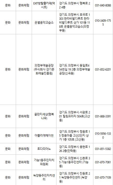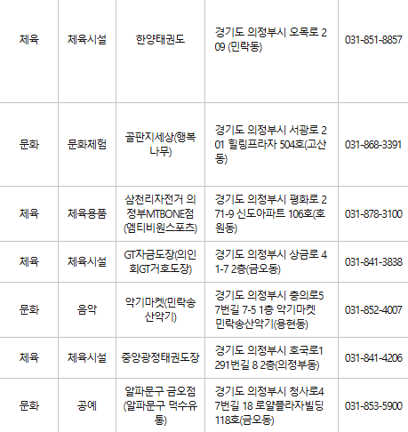 의정부 문화누리카드 사용처