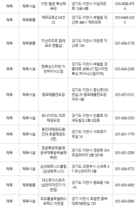 이천 문화누리카드 사용처