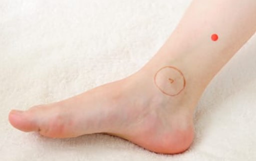 발 안쪽 발목에서 약 4마디 위에 위치