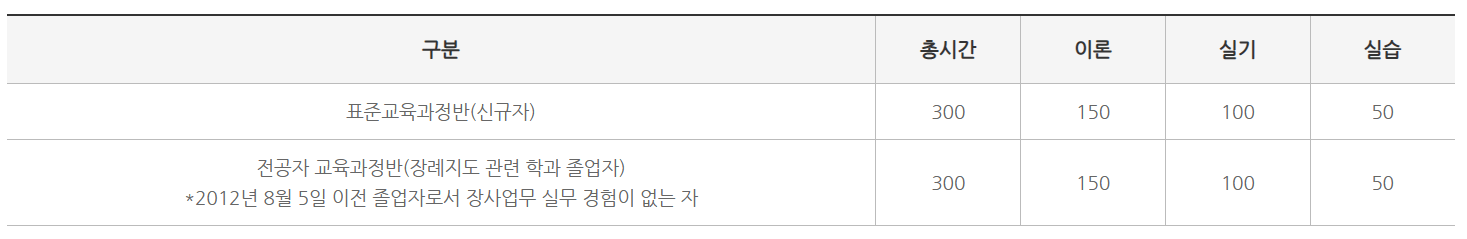 장례지도사 자격증 교육대상자