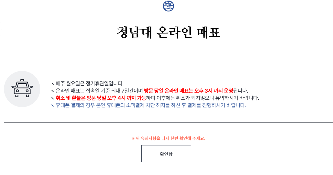 청남대 예약 시 유의사항