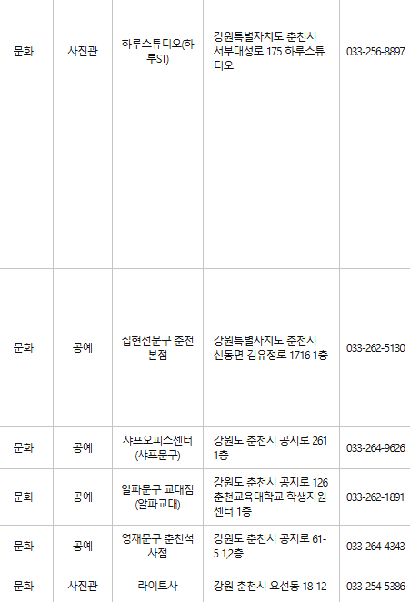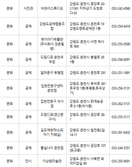 #춘천문화누리카드사용처 #춘천문화누리카드가맹점 #춘천문화누리가맹점연락처 #문화누리카드사용처 #문화누리카드온라인사용처 #문화누리카드잔액조회 #문화누리카드사용처확인 #문화누리카드춘천사용방법 #춘천문화누리카드사용할수있는곳