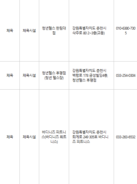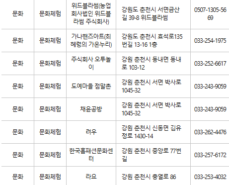 춘천 문화누리카드 사용처