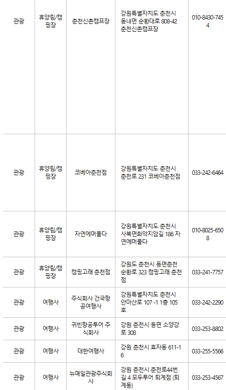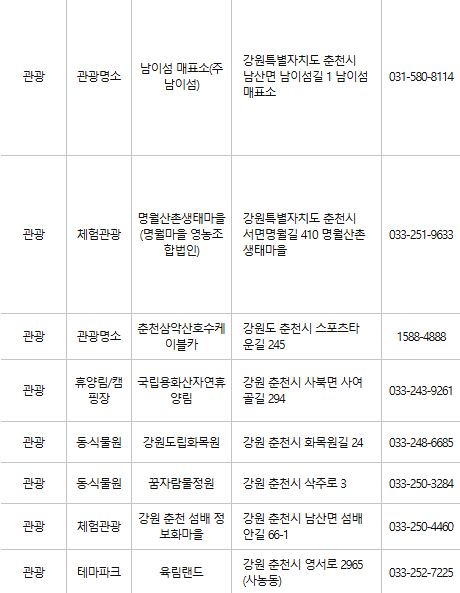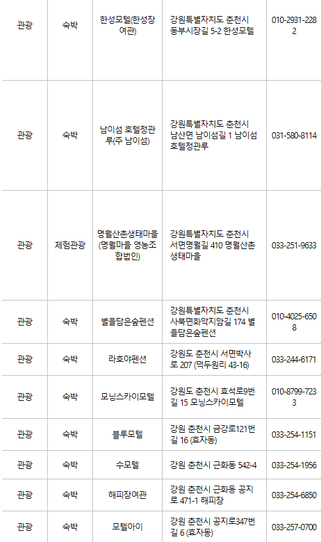 춘천 인근의 숙박업소 및 관광지에서도 카드를 사용할 수 있어 여행을 즐기기에도 유용합니다.
