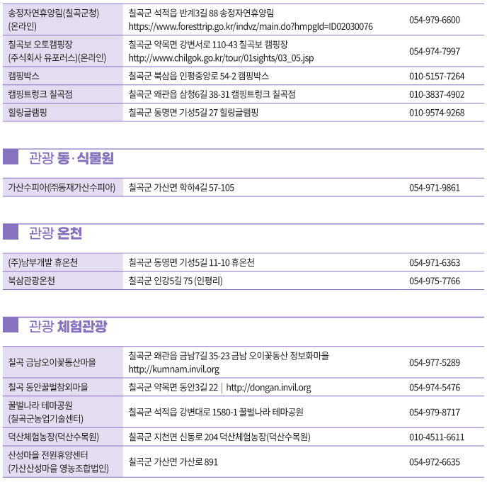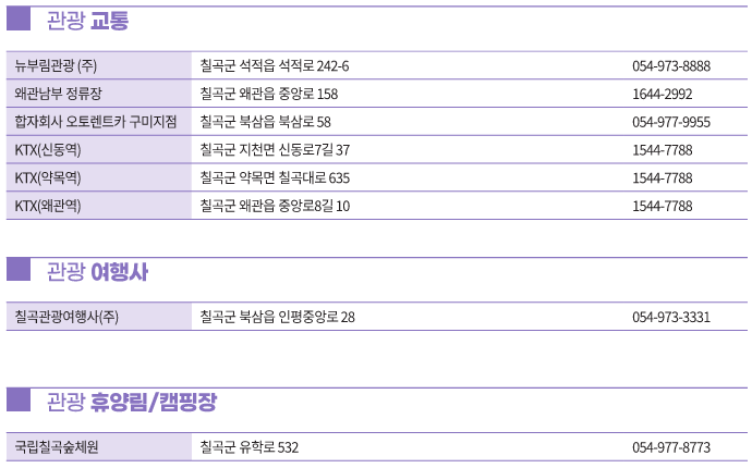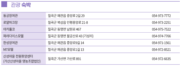 칠곡 인근의 숙박업소 및 관광지에서도 카드를 사용할 수 있어 여행을 즐기기에도 유용합니다.
