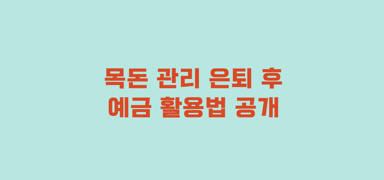 목돈 관리 은퇴 후 예금 활용법 공개