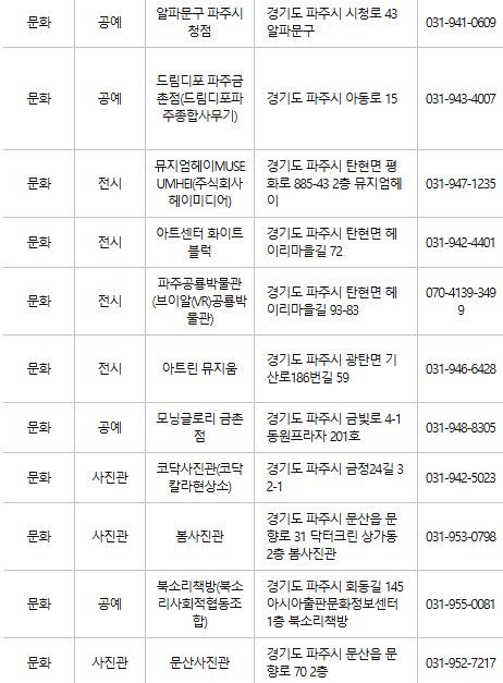 #파주문화누리카드사용처 #파주문화누리카드가맹점 #파주문화누리가맹점연락처 #문화누리카드사용처 #문화누리카드온라인사용처 #문화누리카드잔액조회 #문화누리카드사용처확인 #문화누리카드파주사용방법 #파주문화누리카드사용할수있는곳 #파주문화누리사용처 #파주문화누리개맹점 #파주지역문화누리카드가맹점